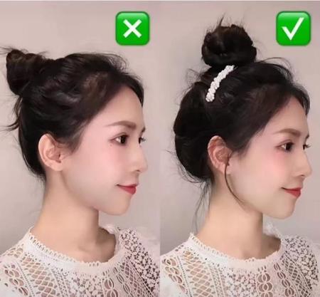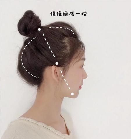 丸子头不要扎的老么高,冲天丸有时候真的会耨巧成拙,理想的高度差不多就在下巴耳朵定和丸子成一条直线。