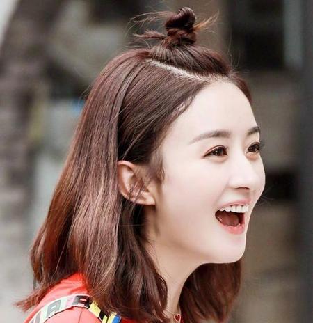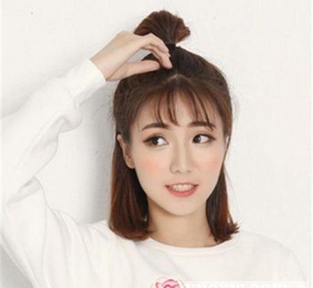 半丸子头有少女的可爱俏皮,同时还很小女人,今年很的羊毛卷刘海与之配合更加的活泼迷人,相比直发来说,要更灵动一些