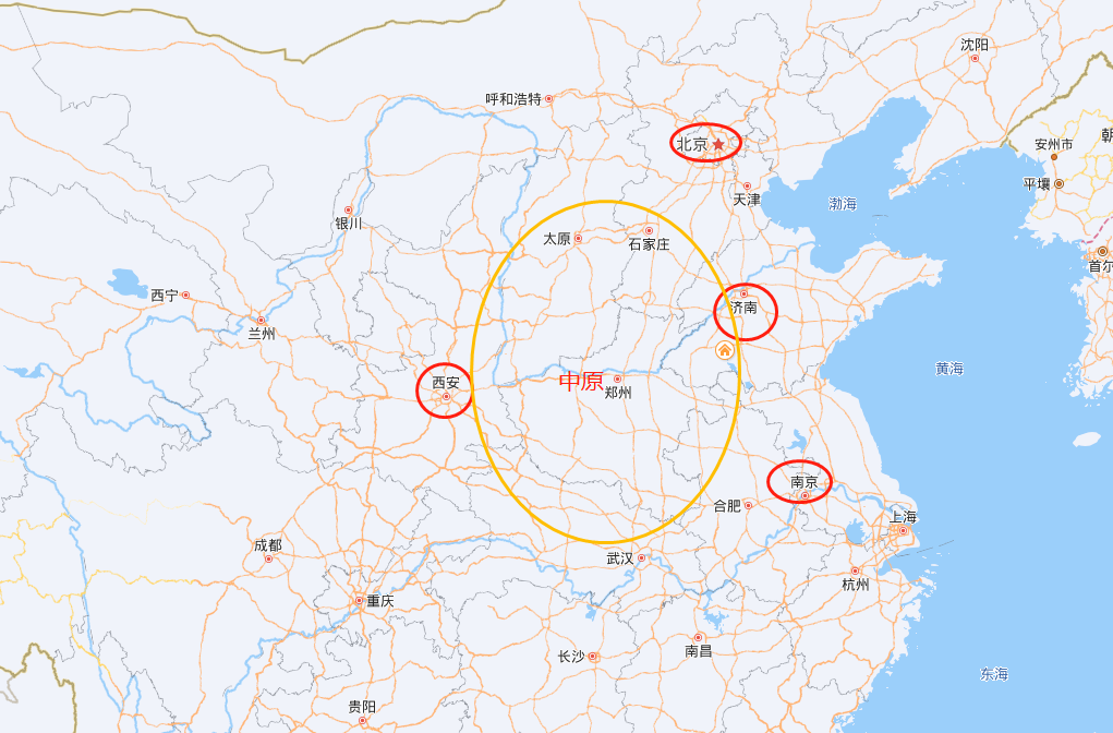 大秦都城咸阳、唐朝国都西安、明清国都北京、山东重地济南,六朝古都南京,除了夏商周时期定都洛阳之外,极少有国家将都城选在中原腹地。