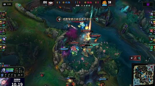 比赛来到天王山之战,本场比赛由于JDG判断失误,在SN一级视野中蹲伏失误,被SN抓到机会,上单船长一气之下拿到了两个人头,梦幻开局也给本场比赛奠定了胜局。比赛到了中期SN便已经几乎领先经济达到1w,虽然JDG顽强抵抗在中路抓到机会拿下大龙,可惜由于巨大的经济及装备差距,被SN一鼓作气推平基地。