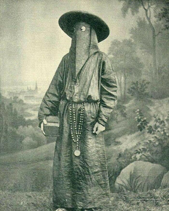 大约在1892年,一个戴着葬礼面具的意大利僧侣