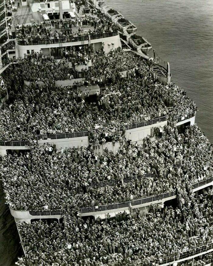 第二次世界大战后回家的士兵。这张照片拍摄于1945年