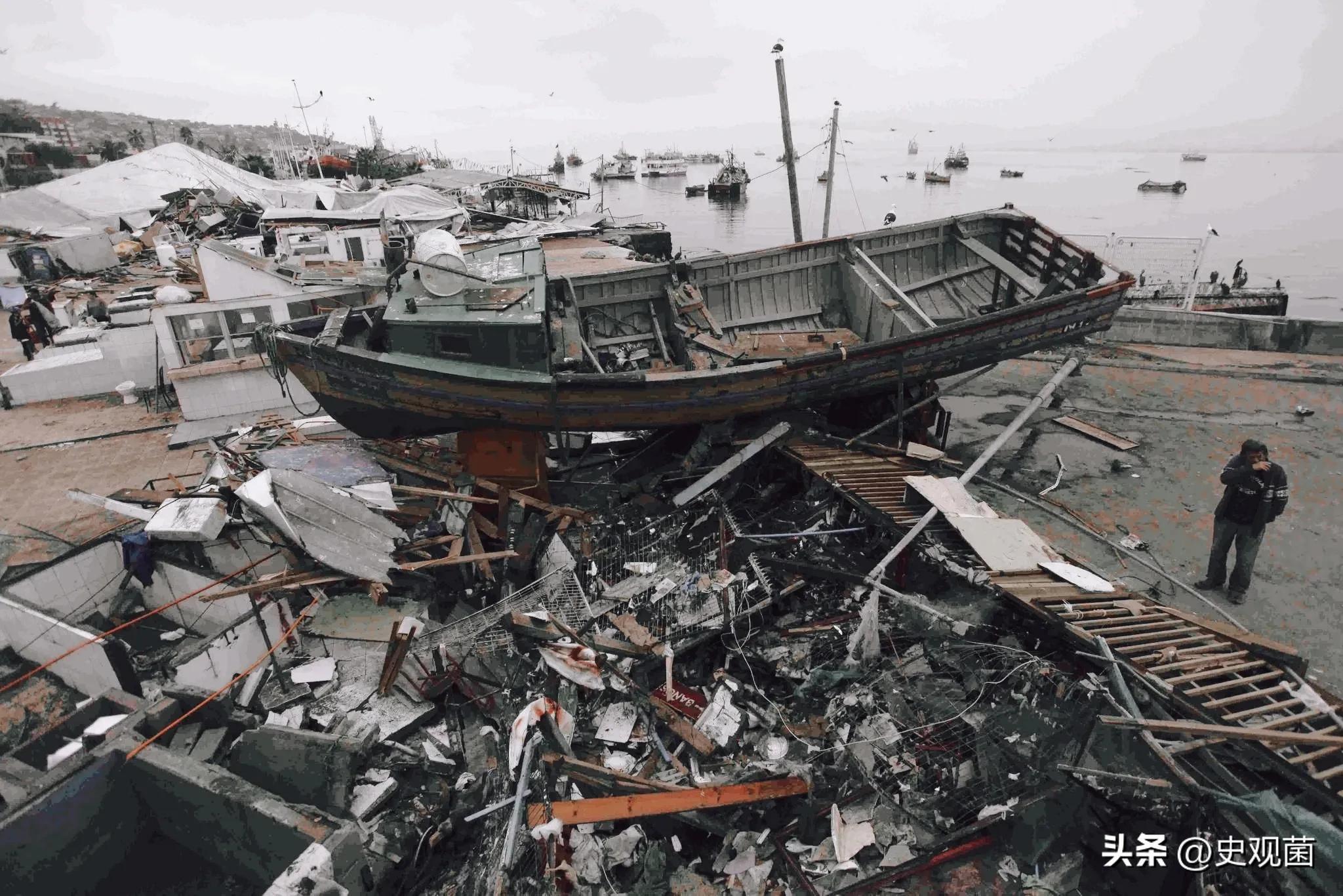 智利大地震造成了20世纪最大的一次海啸,地震期间,6座死火山重新喷发,3座新火山出现,而且智利沿海建筑物大部分被海浪卷走,破坏房屋16万栋,夺走了近2万条生命。