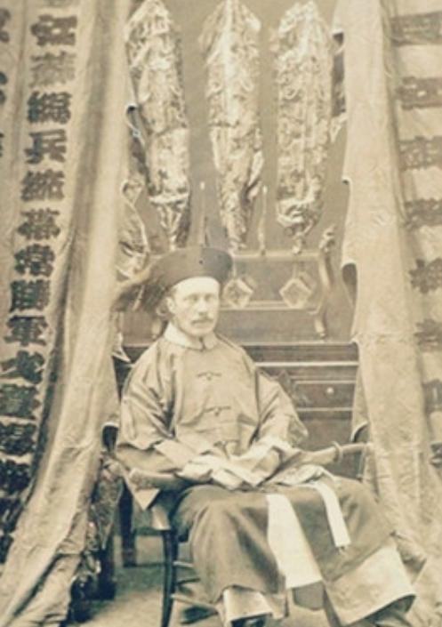 一位名叫威廉.桑德斯的英国人拍摄的,可以看出这张照片中人的后方有着写着“江苏练兵统领常胜军戈登....”字样的条幅。