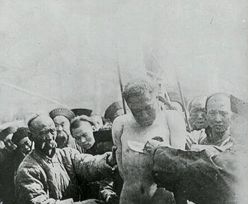 据说是林凤祥凌迟受刑的照片,但只要一看那人剃头留辫的样貌,就知其非。