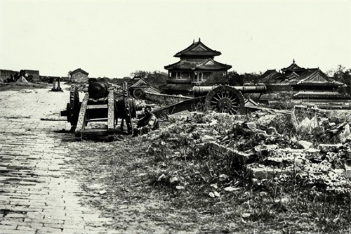 北京安定门,可以看到在城楼上,清军遗弃了几门火炮,人都跑光了。