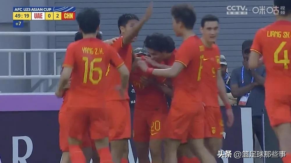 中国2:1阿联酋的比赛,第9分钟阿联酋打出快速反击,左路的下底传中球,贾非凡不慎自摆乌龙,幸运的是对方越位在先进球被取消。第24分钟中国队开出战术角球,谢文能禁区内抽射破门,场上比分改写为1:0。第41分钟拜合拉木远射打在对方球员手臂上,主裁判先是判罚点球随后VAR回看后又取消。上半场伤停补时阶段,阿联酋后卫玩火失误,刘祝润断球突入禁区冷静施射破门,中国队2:0领先。第48分钟中国队防守精力不集中,艾哈迈德—法齐接到长传球,胸部停球后推射破门,场上比分改写为1:2。第69分钟曼苏里近距离抽射击中边网,中国队逃过一劫。第66分钟又是曼苏里的劲射,门将李昊将球扑出。第81分钟苏丹—阿里任意球攻门颇具威胁,李昊再次做出精彩扑救。此后比赛两队互有攻守,但比分没有再被改写。