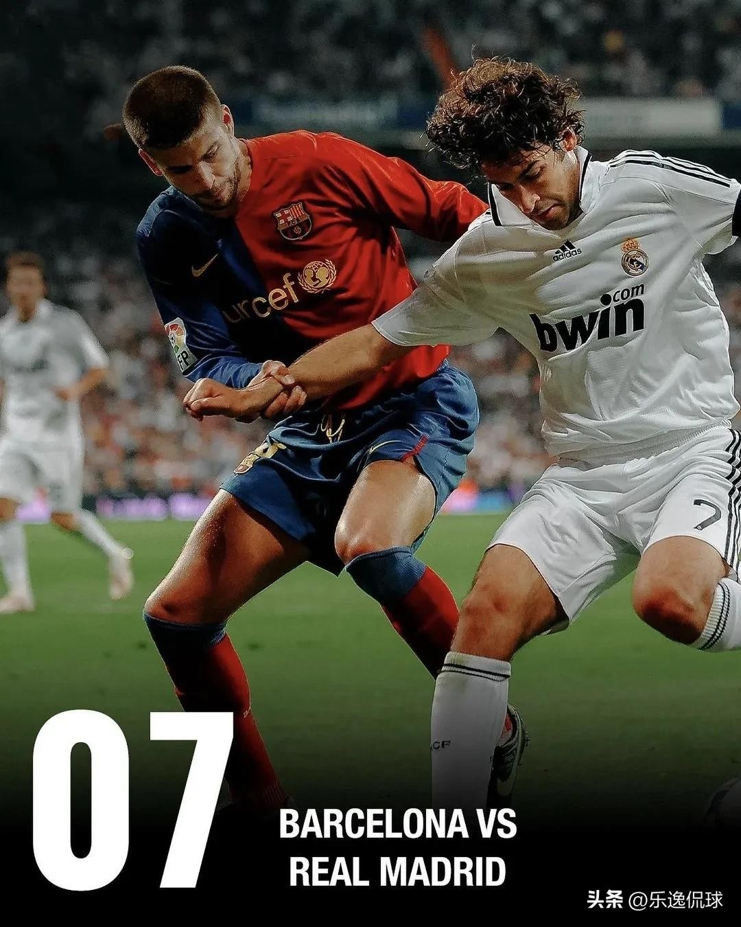7、西班牙国家德比:皇家马德里对阵巴塞罗那,首场比赛始于1902年,巴塞罗那胜100场,皇家马德里胜104场。