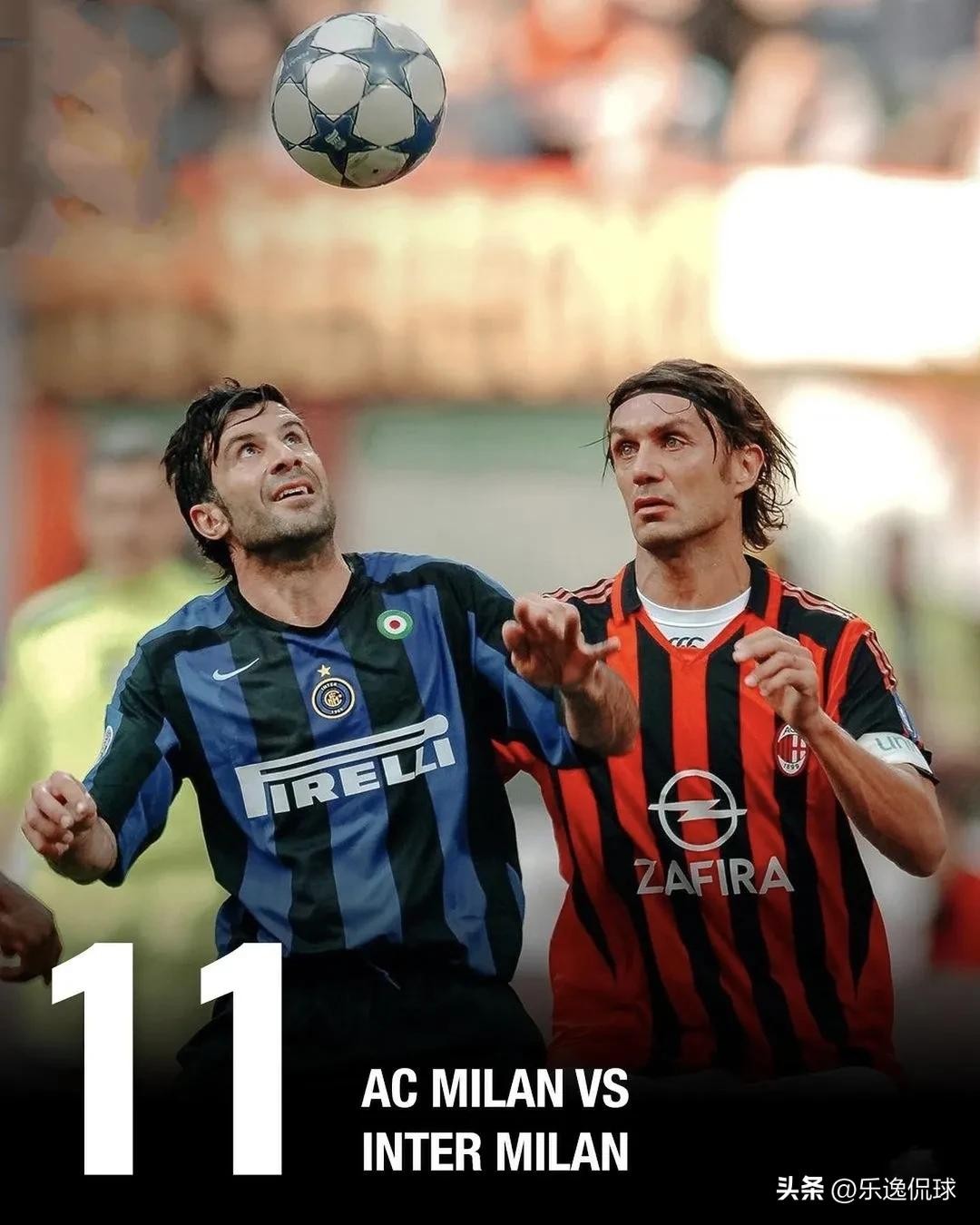11、米兰德比:AC米兰对阵国际米兰,首场比赛始于1909年,国际米兰胜90场,AC米兰胜79场。