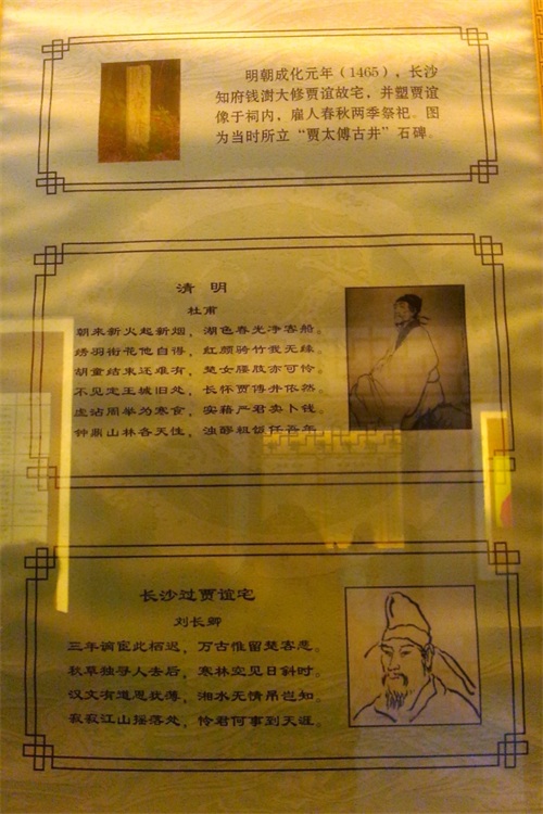 明朝成化年间,长沙太守钱澍寻贾谊古井,募款修建贾太傅祠,这是贾谊故居第一次以祠宅合一的形制重修。