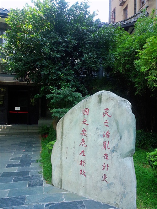 走出太傅殿,便看到了寻秋草堂。草堂前有一石碑,上面题刻着贾谊的安邦治国之道: