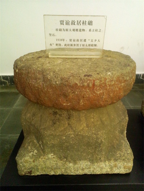 该柱础为原故居大观楼遗物,系立柱之坚石,1938年,贾谊故居遭“文夕大火“焚毁,此柱被弃置于原太傅殿侧。看到它,我仿佛看到了一段历史: