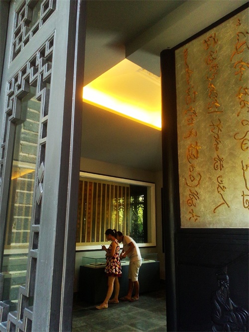 进不了草堂,也没有茶喝,我们到旁边的陈列室看看吧——