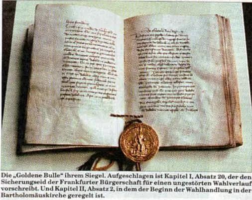 然而金玺诏书还规定选帝侯在其领地内政治独立,拥有司法、征税、铸币、盐、铁矿开采等国家主权,皇帝无权干涉。这些规定使得帝国进一步分裂,为后来几百年的战争与动乱埋下了隐患。
