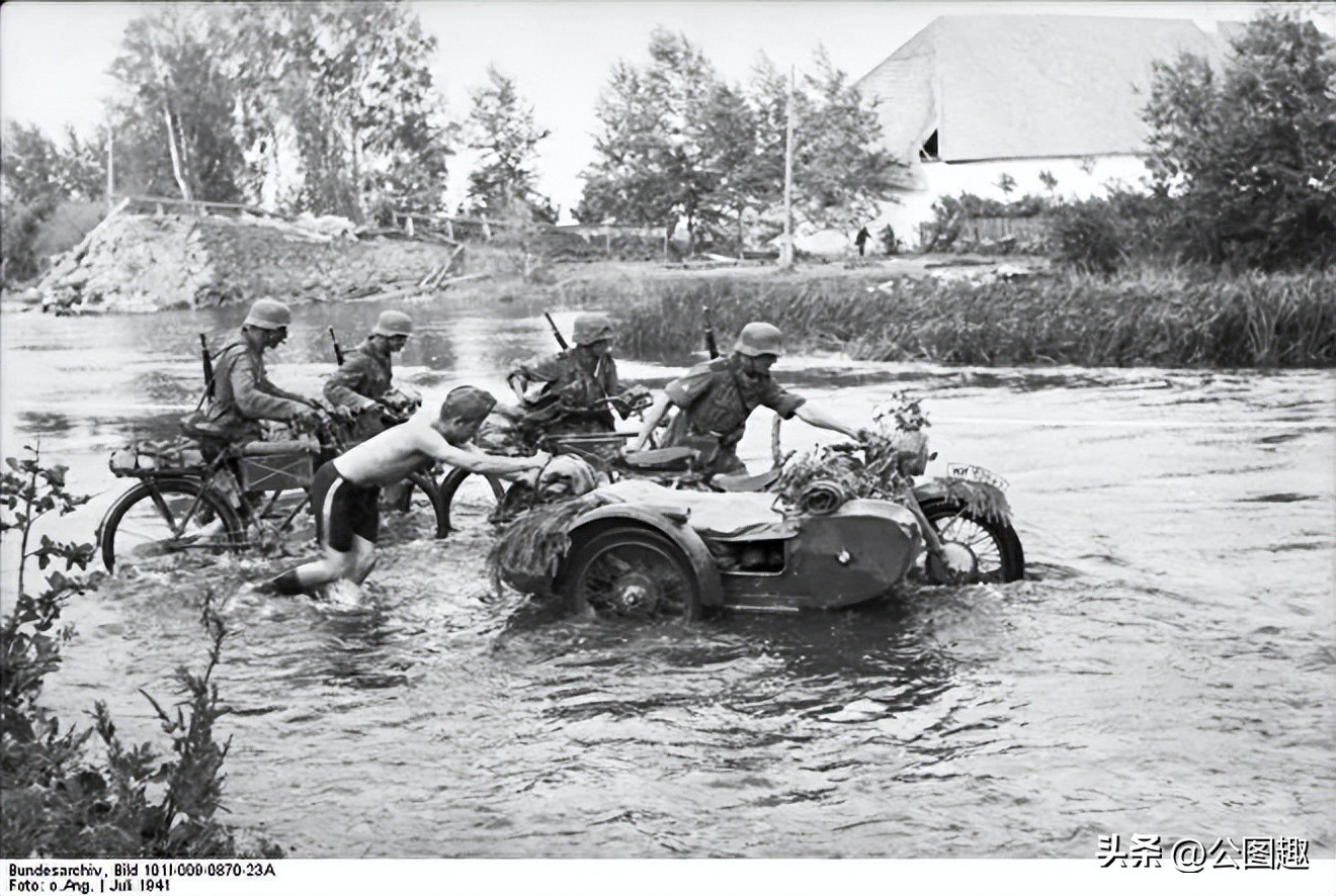 在关于二战的电影中,我们经常看到德军的快速突进,一群德国摩托车手很容易出其不意地撵上后方的苏军部队。德国国防军的摩托车越野能力很强,可以通过梯队防御并穿越森林。