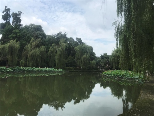 逛完博物馆来到了鳖灵湖,鳖灵湖中间狭长,南北宽阔,在南北两面宽阔的湖面,荷叶成片,摇曳生姿,而湖边则遍植绿柳,风舞轻扬。