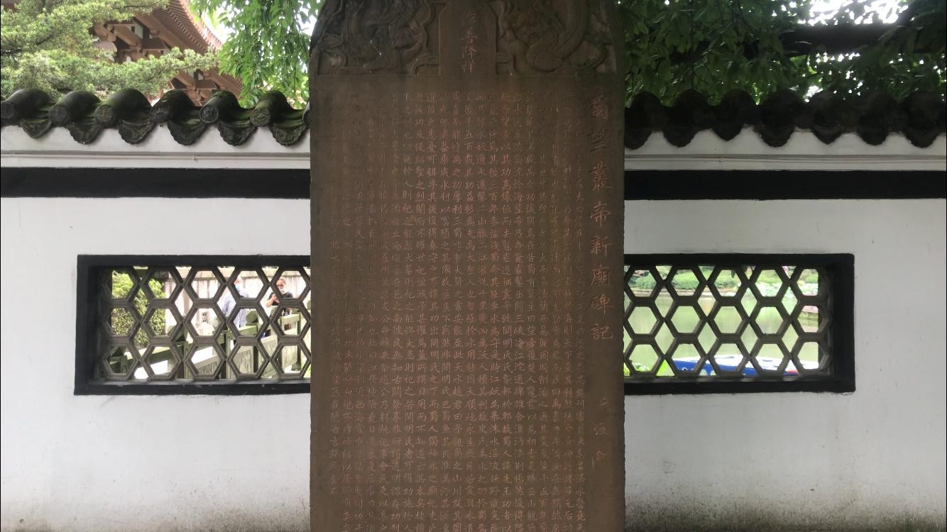 两道阙门之旁,还分别立有一块石碑,南为清代张日晸(zhěng)的《岷阳新庙望丛古帝碑》,北为宋代张俞的《蜀望丛帝新庙碑记》,这两块石碑对研究古蜀国和望丛祠的历史具有重要价值。下图是《蜀望丛帝新庙碑记》。