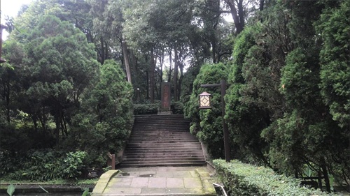 纪念馆背后,是一座别致的拱桥,穿过拱桥向西,是一片成荫的柏林。 森森柏林之中,凸起一座坟陵,这就是高达15米的望帝陵。