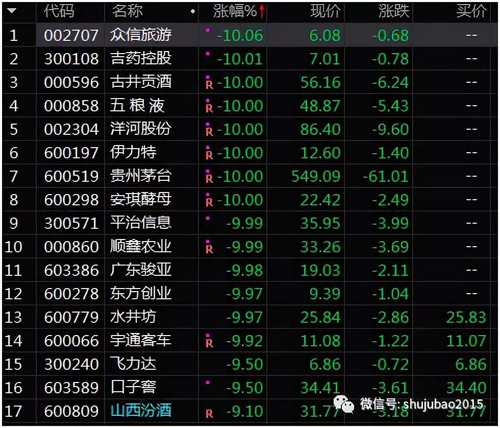 公众号“数据宝”统计显示,这是贵州茅台历史上第一次开盘跌停,而看其跌停板上的封板数量,其收盘跌停的可能性也不小。如果该股收盘跌停,将是该股历史上首次一字跌停,也是该股历史上的唯一一次跌停板。
