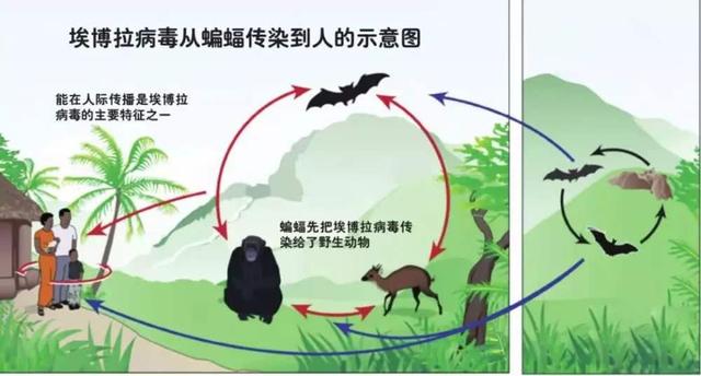 埃博拉病毒从蝙蝠到人的传布道路表示图