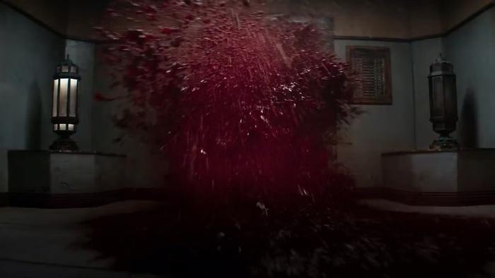 包括,我们也在片中看到了模仿《闪灵》的电梯血海,人直接从血海里爬出来,也是非常刺激了。