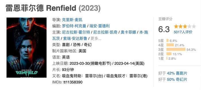 还有关于吸血鬼德古拉与他仆人的电影《雷恩菲尔德》