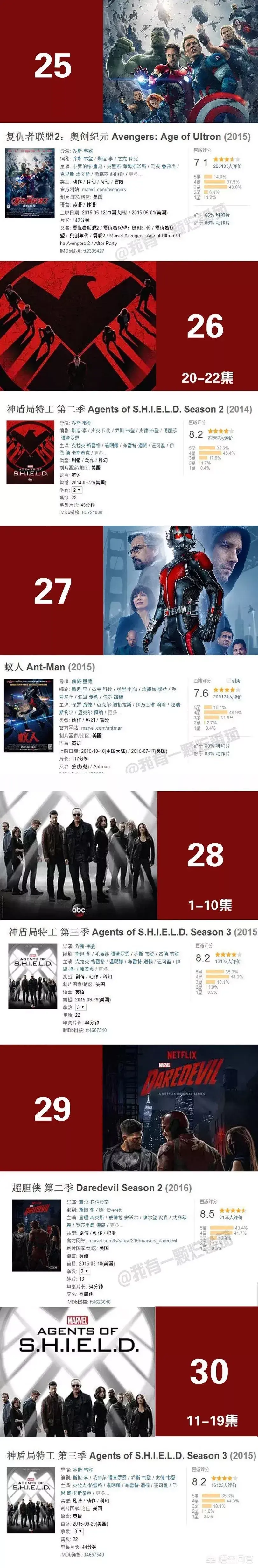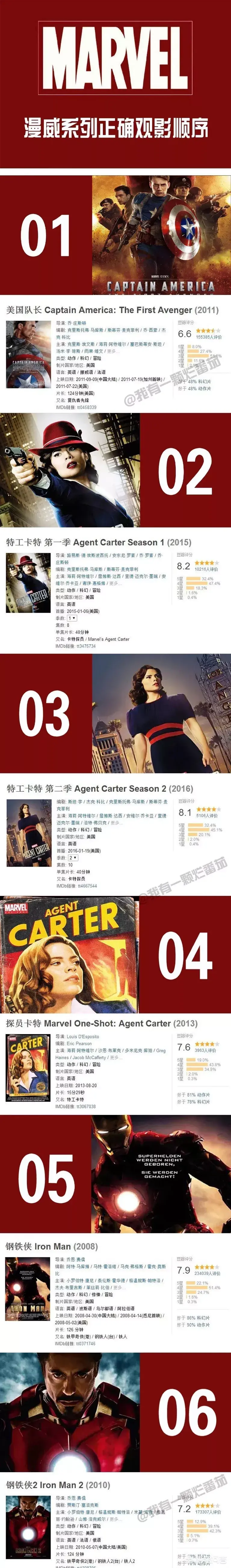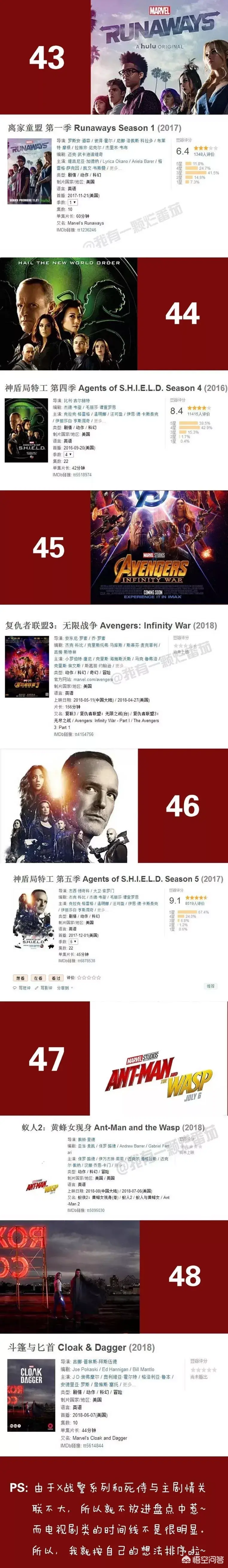 目前为止最全的漫威系列影片的正确观影顺序,包含了48部电影电视剧以及短片。