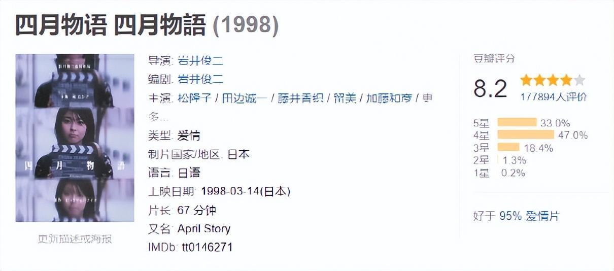 《四月物语》是一部由岩井俊二执导,松隆子、田边诚一、津田宽治等主演的爱情电影。