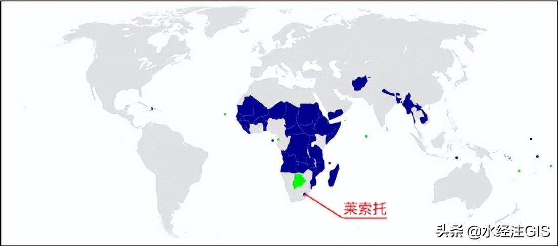 世界最不发达国家全球分布图(绿色为已除名国家)