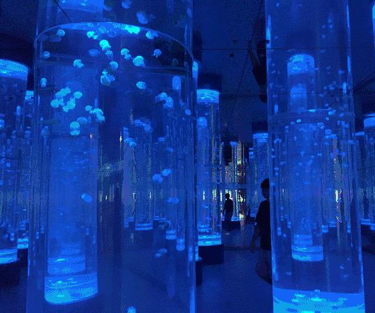 A馆主要有生物观赏、海洋课堂、美人鱼剧场、海底隧道、水母迷宫,5D影院,还有不同主题的舞台为大家上演精彩节目和5种职业体验穿插其中。观赏的部分主要是在A馆。