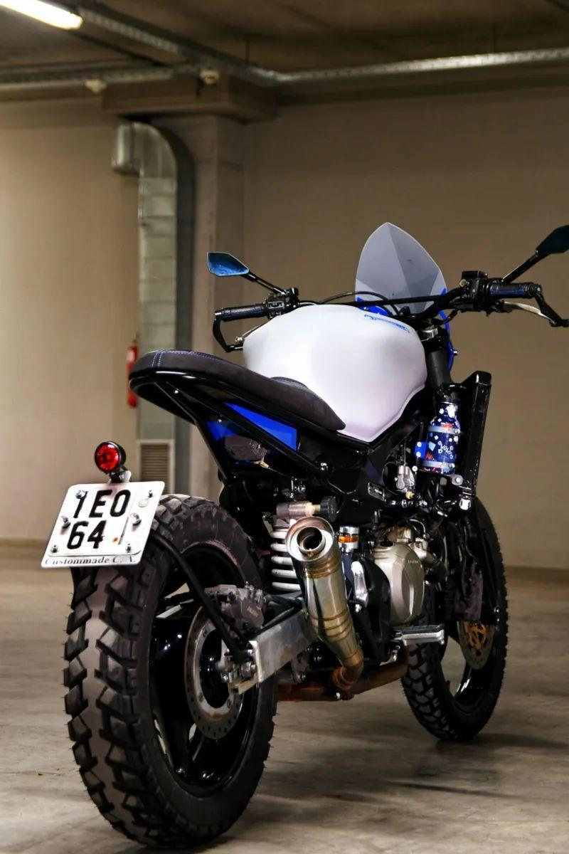这是来自希腊的custommade工作室改装的作品,原型车可能很多人都比较陌生,它是本田的Varadero 1000,车型虽然罕见,但发动机平台是源自VTR 1000这台知名度更高的趴赛。这家工作室也比较有意思,致力于将各种笨重的大排量车型进行复古简化改装,他们的改装作品可以为一些想把现代街车、跑车进行复古改装的玩家提供更多的思路。