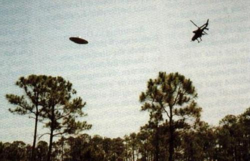1996年由一名现在无法确认姓名的摄影师拍摄,照片显示在美国佛罗里达州的某个地方一架军用直升机正在追逐一个不明飞行物。