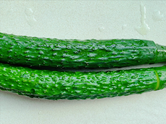 1、去菜市场或者超市里面,挑选两根鲜嫩的黄瓜,过于粗壮笔直的不要买,那种有激素,要买自然弯曲,个头适中的黄瓜,切掉头尾,先清洗干净,黄瓜要不要去皮,根据自己的喜好来,我是直接带着皮吃的。