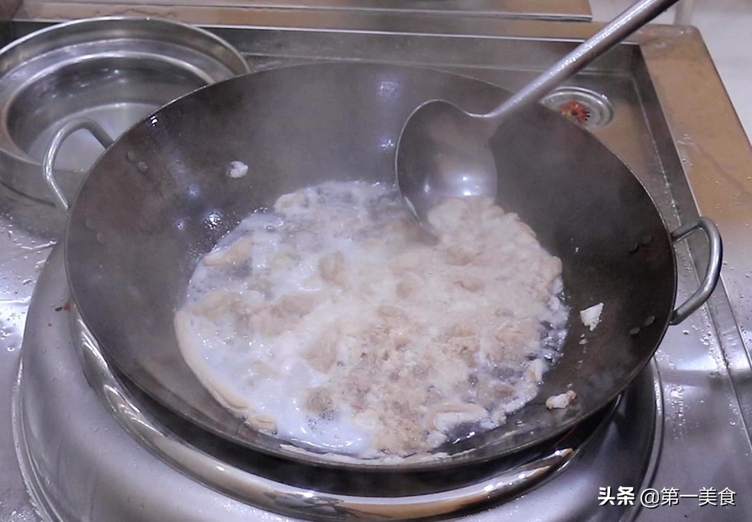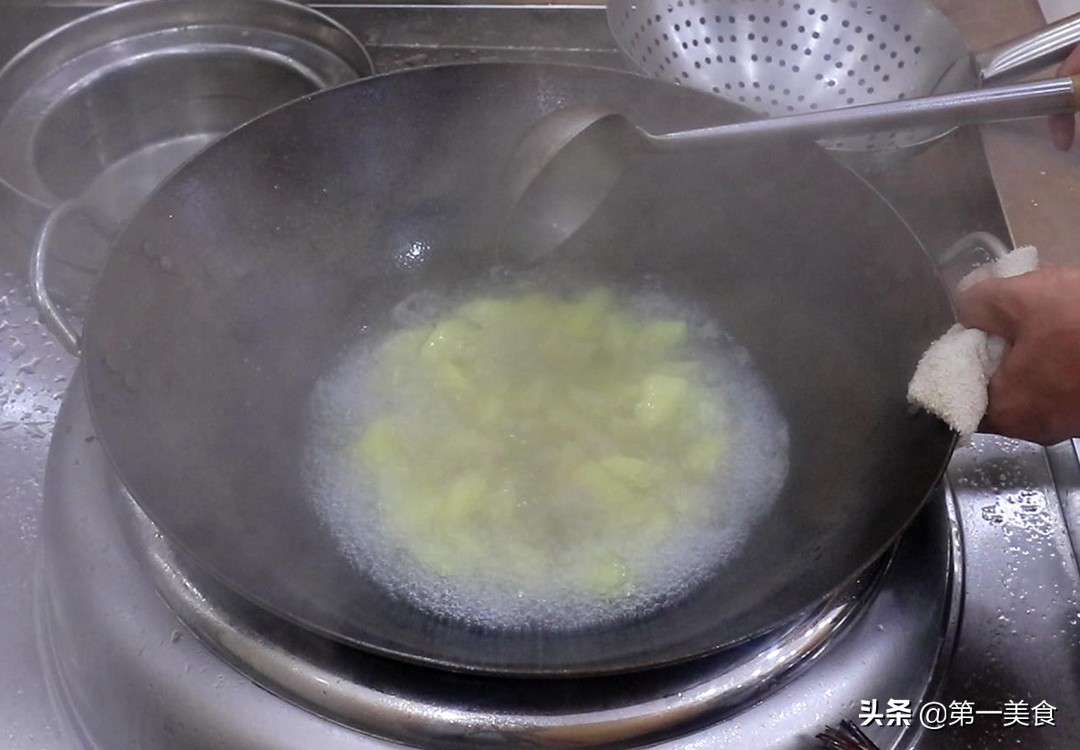 锅内烧油,油烧热以后,把牛肉倒入锅中进行煸炒,炒出里面的水分,牛肉炒香以后倒出来,控油备用,