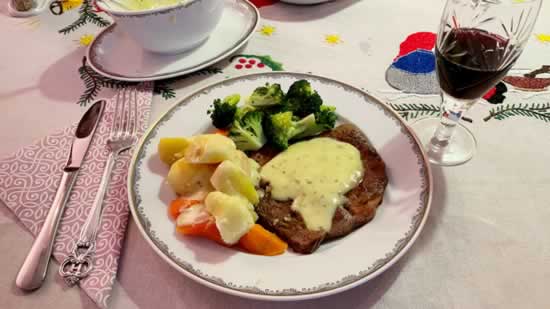 配牛排吃的酱汁品种也是很多的,我特别喜欢边尼士酱汁Bearnaise,超市里可以买到粉末装的,加点黄油,牛奶或水煮至稀稀的状态,稍许有点挂勺就可以了。