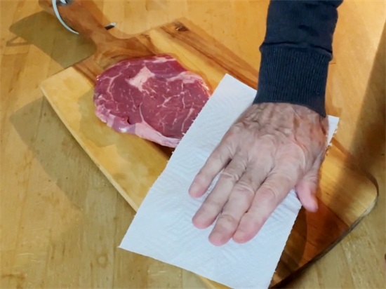 包装打开以后,用餐巾纸轻轻地将表面沾沾,千万不要捶打哦,不然的话内部的汁水都让你打出来了,就没有那种多汁的口感了,也无需腌制。
