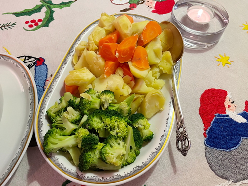这是煮好的胡萝卜、土豆和西兰花。