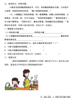 (2)小猴戴妈妈的眼镜的感觉是模模糊糊语文,戴奶奶语文形容词的眼镜的感觉是头昏眼花,什么的眉毛填上合适的词语。