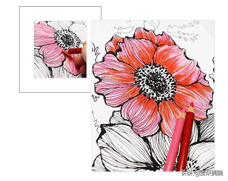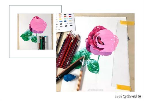 油性彩铅可以结合马克笔上色。作画技法:先用铅笔画出玫瑰的形体,再用桃红色马克笔先铺一层底色