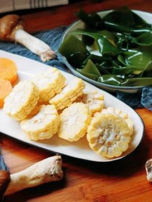 材料视频准备:胡萝卜、玉米吃最、新鲜姬松茸、干海带结