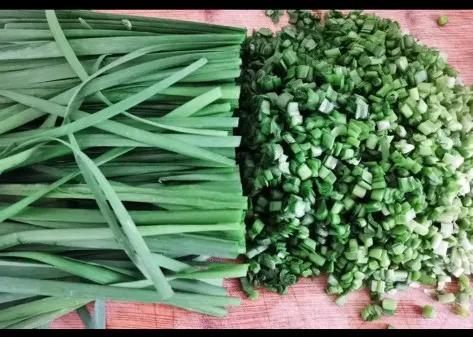 切起来很嫩,水分很充足。切韭菜的声音很好听,嚓嚓,嚓嚓,比切任何菜的声音都动听。