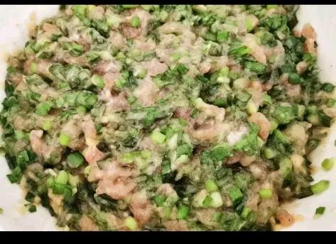 肉馅儿是昨天晚上剁好调好的,加进去韭菜就行。
