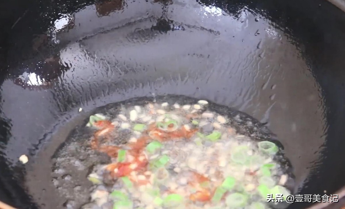 4.现在要起锅烧油了,等油温升起来了,把葱花和生姜沫一起倒进锅中,用铲子进行翻炒。把葱花和姜沫给炒出香味了,就给锅里加入一些番茄酱,继续用铲子进行翻炒,要把番茄酱给炒均匀了。