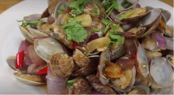 一道美味的爆炒花甲就做好了,吃起来肉馅味美,没有沙子,喜欢赶紧试试吧。