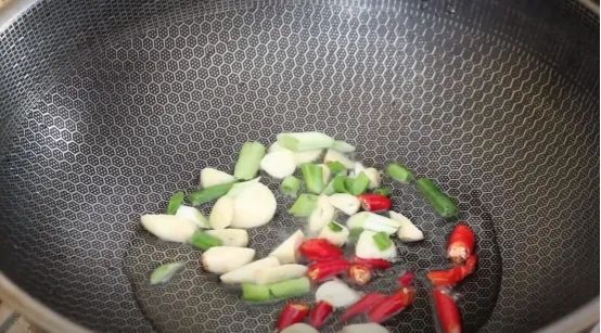 4、准备适量洗净的小葱切葱花,生姜切片,蒜瓣切成片,小米辣切成圈备用。起锅倒入适量食用油,油热后放入葱话、姜片、蒜片、小米辣先炒香,然后放入洋葱继续翻炒,将洋葱炒至断生,接下来放入花甲翻炒一下,接下来放点生抽、食用盐、白糖调味,将调味料翻炒均匀,最好加入水淀粉勾芡,炒至汤汁浓稠就可以了。