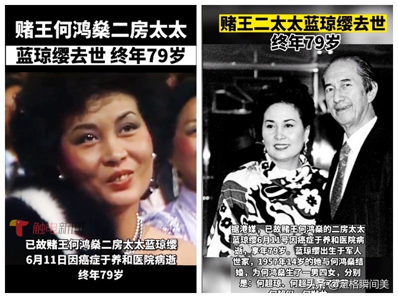 昨天,有媒体报道出,赌王何鸿燊二房太太蓝琼缨,已于上周六(11日)病逝于养和医院,享寿79岁。