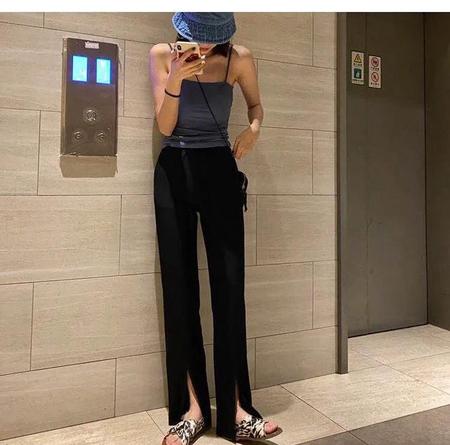 开叉裤就是在裤脚的地方剪开一个叉口,是今年很流行的款式,它可以拉长你的双腿比例,让你瞬间气场全开。#穿搭# #潮流风格穿搭# #今天穿什么#