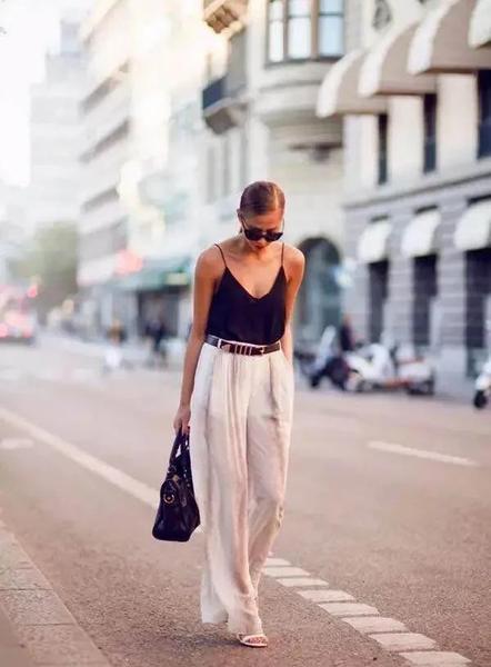 阔腿裤对所有妹子都很友好,是遮住肉肉的一把好手,能调整腰线,视觉上增高,又非常万能百搭,绝对是夏季必备款。