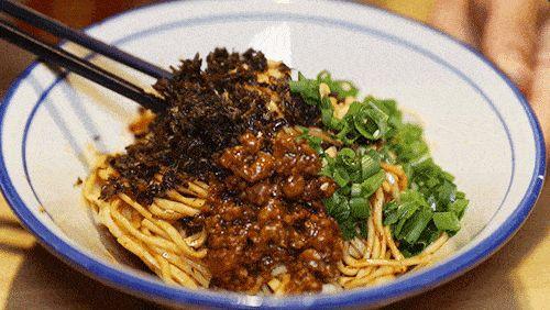 庆凉面有油,而且还要放两遍油。第一次,碱水面断生捞起,趁着热乎拌上芝麻油,让面条根根分明,吃起来才爽滑劲道。第二次则是在最后加入必备的油辣子,各种辣椒在高温里爆发出不同的香气,光闻着就让人疯狂分泌口水。