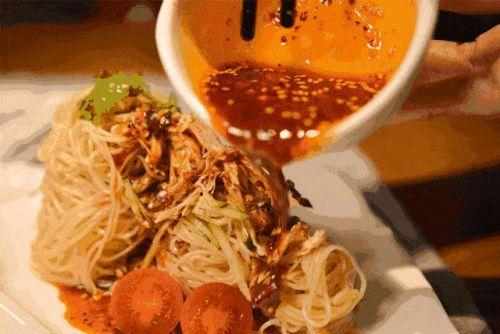 鸡丝凉面也是历史悠久的美食之一,据《东京梦华录》记载,早在北宋时期,东京集市上已出现了名为“丝鸡淘”的小吃,即为鸡丝凉面的前身。但当时的“丝鸡淘”大概不是川味,如今这般鲜香麻辣的鸡丝凉面,大概只有四川人做得出来。